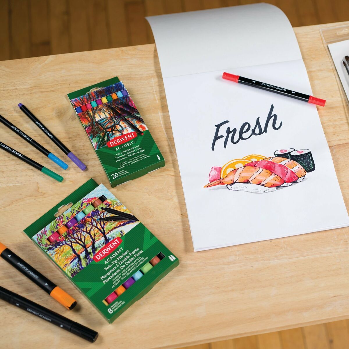 Set of Felt Tip Pens DERWENT Academy Multicolour Double-ended 8 Pieces In Stock